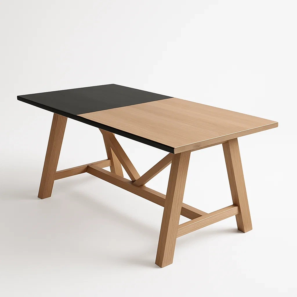 Realizzato con un piano in MDF e gambe in legno di rovere.