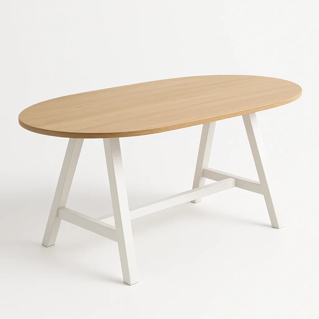 Colore del piano: rovere. Colore delle gambe: bianco.