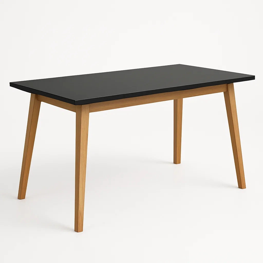 Tavolo da pranzo rettangolare con piano in melamina nera e gambe in legno massello colore legno naturale 120×60×75 cm